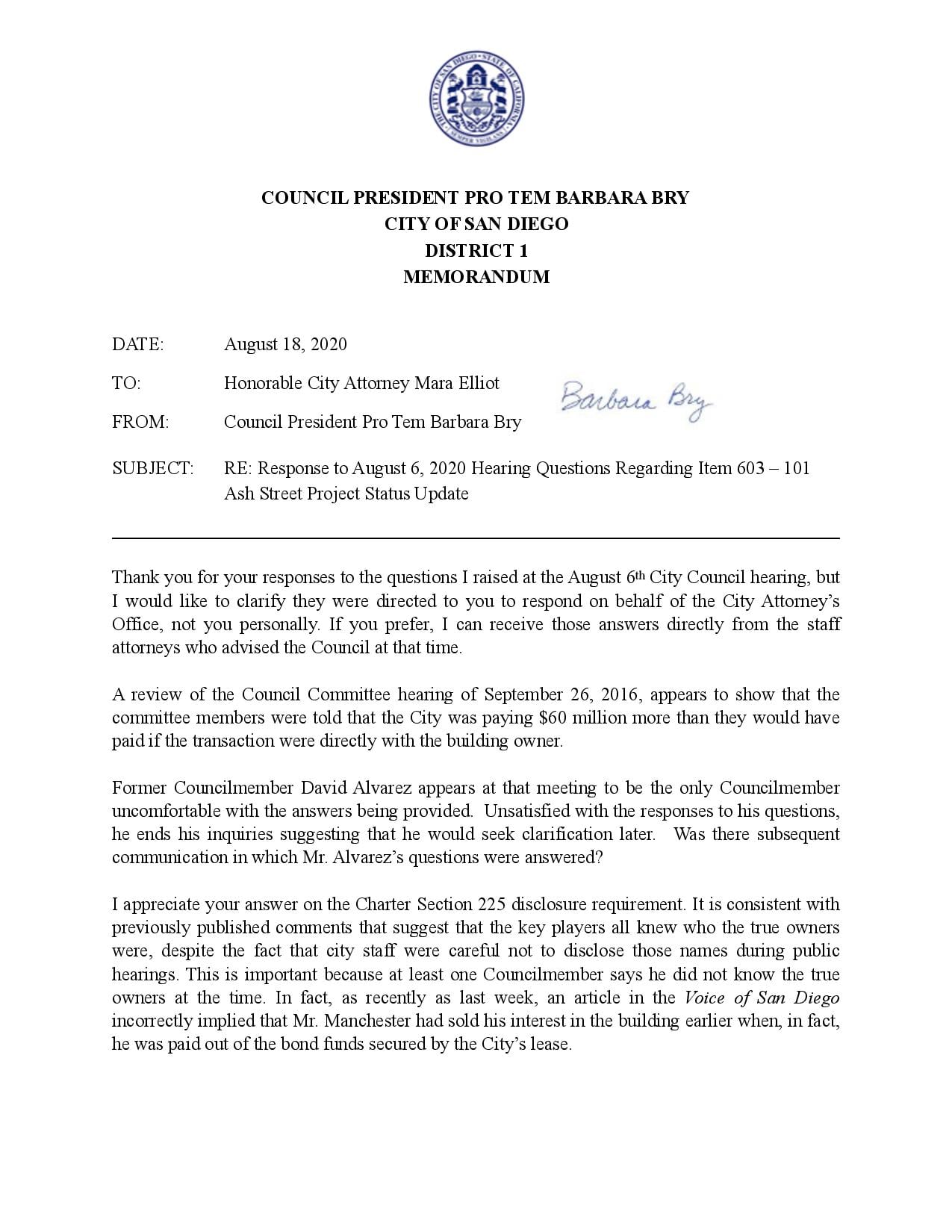 Your question is a transparent attempt to deflect attention from the fact you were personally involved in orchestrating the 101 Ash Street purchase.